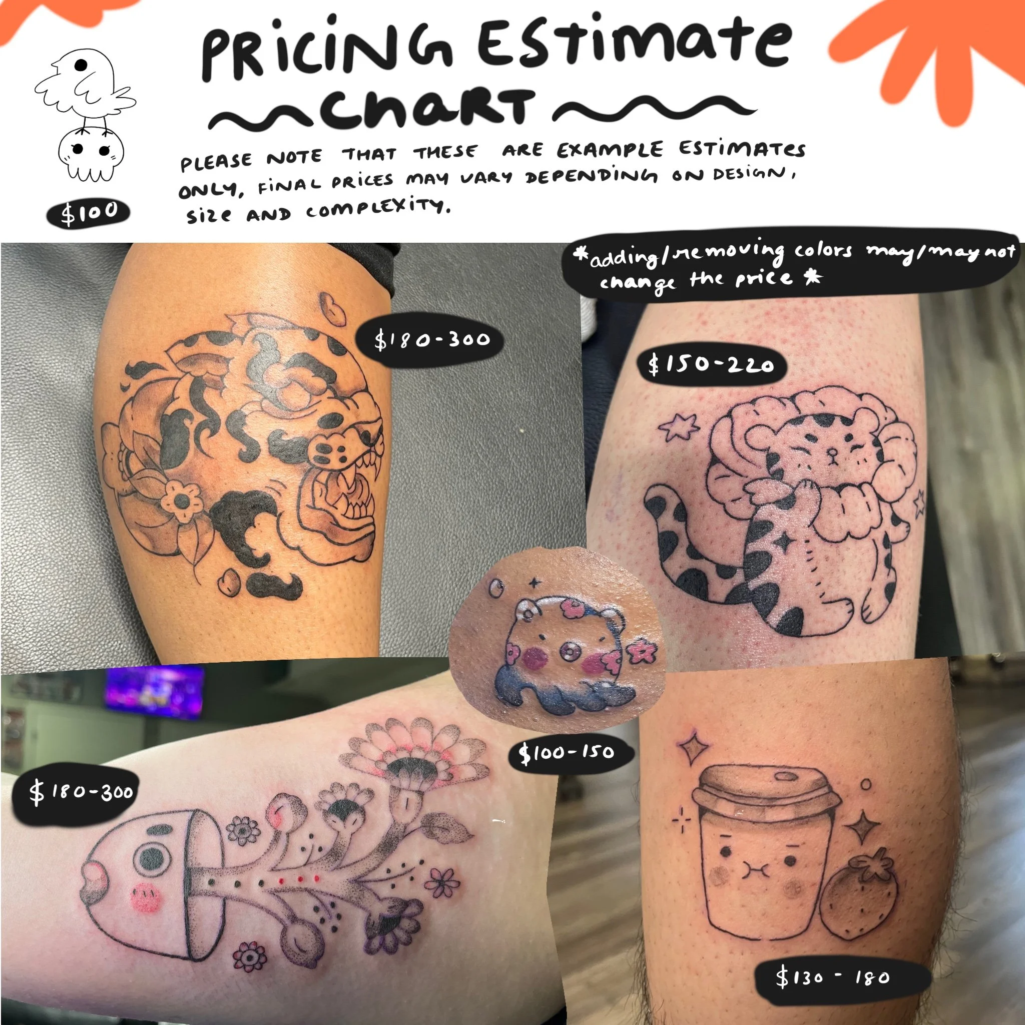 The form would take you to my calender, I charge a 50$ deposit for tattoos.